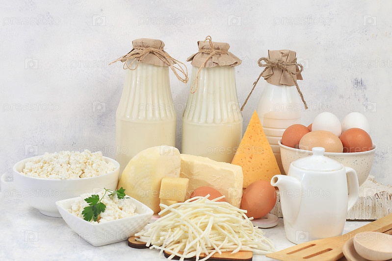 Ассорти из свежих молочных продуктов, концепция натуральных продуктов, здоровый завтрак с ингредиентами, поддержание здоровой микрофлоры кишечника, диетическое питание, деревенский стол, избирательный подход