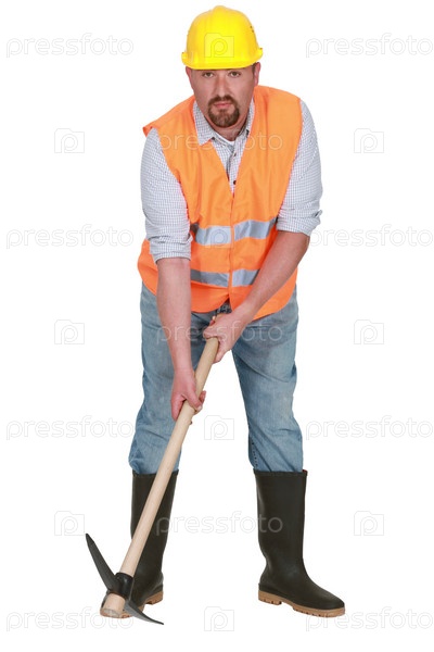 Бородатый рабочий с киркой