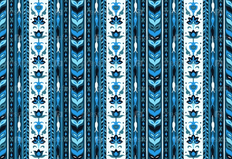 Геометрический дамасский орнамент. Икат границы. Этническая вышивка с листьями и монограммами. Племенная векторная текстура. Бесшовный народный узор в ацтекском стиле. Индийский, скандинавский, цыганский, мексиканский, африканский ковер