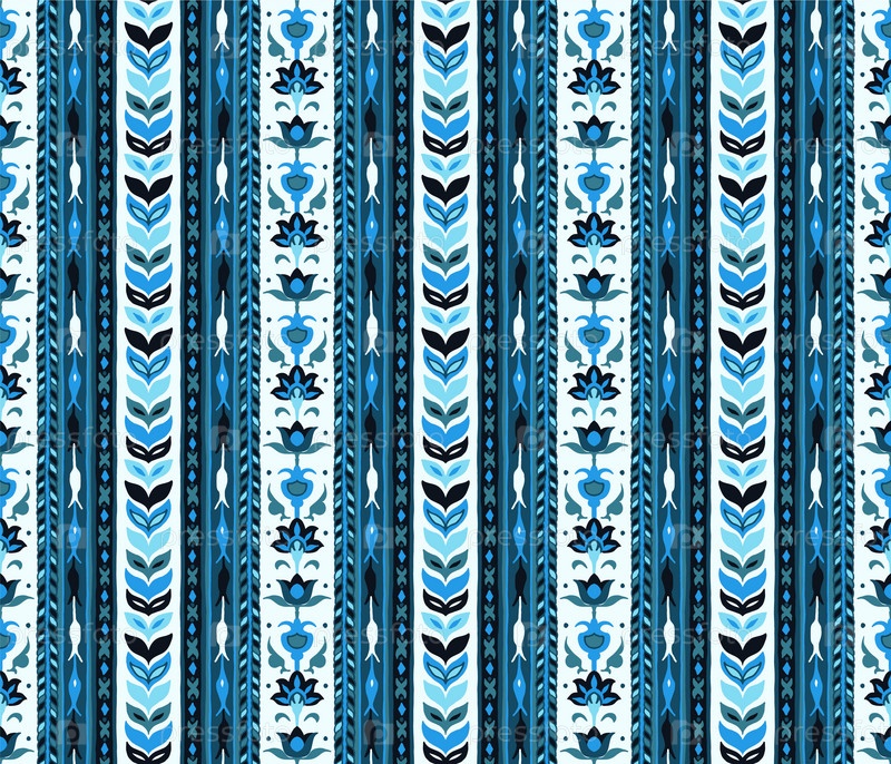 Геометрический дамасский орнамент. Икат границы. Этническая вышивка с листьями и монограммами. Племенная векторная текстура. Бесшовный народный узор в ацтекском стиле. Индийский, скандинавский, цыганский, мексиканский, африканский ковер