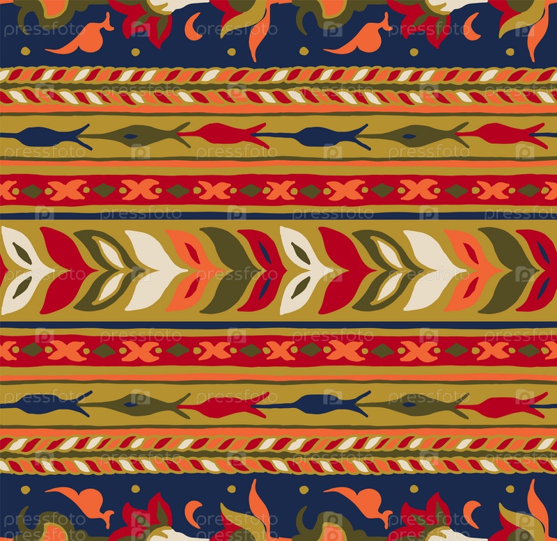Геометрический фольклорный орнамент икат. Племенная этническая векторная текстура. Бесшовный полосатый узор в стиле ацтеков. Рисунок племенной вышивки. Индийский, скандинавский, цыганский, мексиканский, народный узор