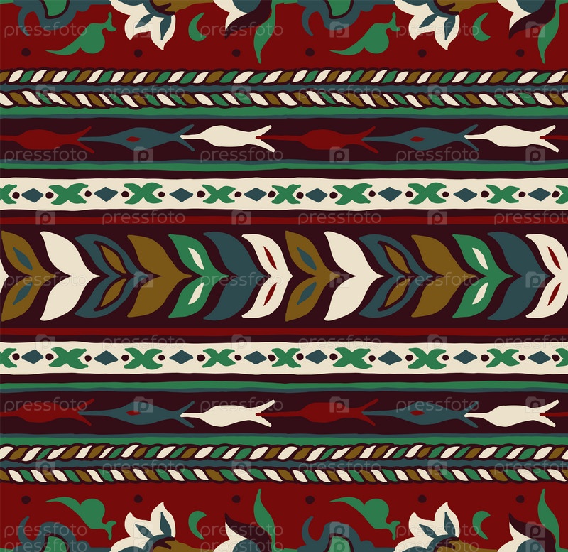 Геометрический фольклорный орнамент икат. Племенная этническая векторная текстура. Бесшовный полосатый узор в стиле ацтеков. Рисунок племенной вышивки. Индийский, скандинавский, цыганский, мексиканский, народный узор