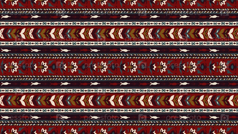 Геометрический фольклорный орнамент икат. Племенная этническая векторная текстура. Бесшовный полосатый узор в стиле ацтеков. Рисунок племенной вышивки. Индийский, скандинавский, цыганский, мексиканский, народный узор