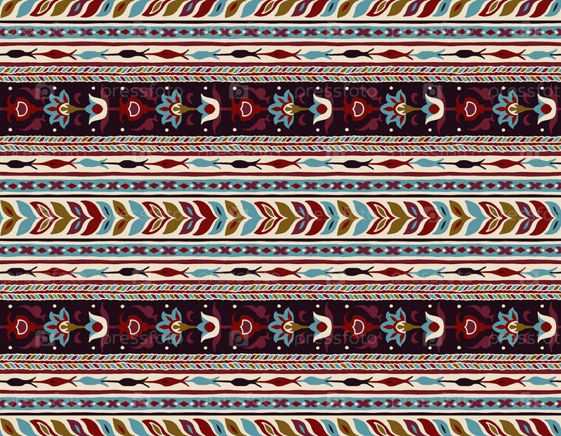 Геометрический фольклорный орнамент икат. Племенная этническая векторная текстура. Бесшовный полосатый узор в стиле ацтеков. Рисунок племенной вышивки. Индийский, скандинавский, цыганский, мексиканский, народный узор