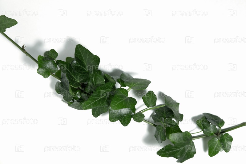 Креативный макет зеленого растения плюща Hedera helix на белом фоне с жёсткими тенями Вид сверху Лиана