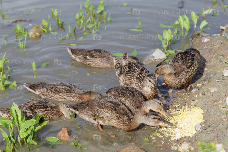 маллардовая утка ест