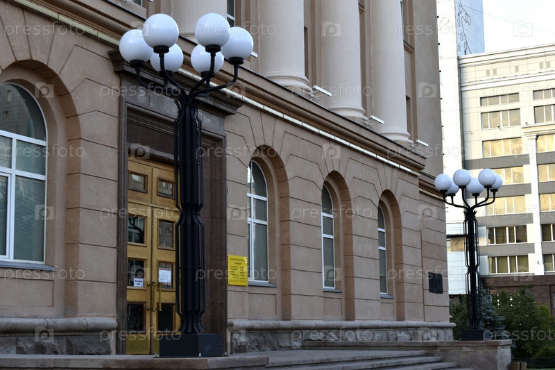 Круглые декоративные уличные фонари на фоне окна. Красивые уличные фонари в городе