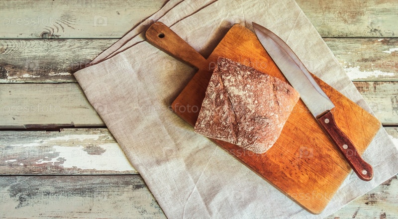 Ржаной хлеб и кухонный нож на старом деревянном столе