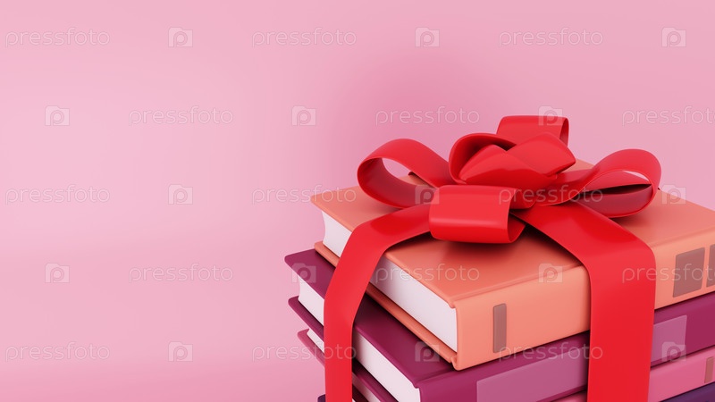 Книги в качестве подарка, перевязанные лентой с большим бантом. Фон с пустым пространством слева. Книга - лучший подарок - иллюстрация рендеринга 3d