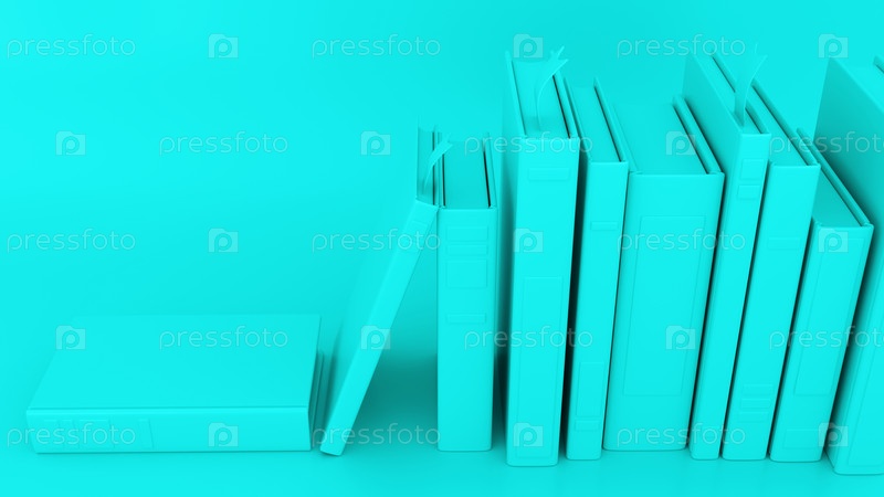 Книги на полке, одноцветный изумруд, Книжная полка, 3D книги для баннера 'Назад в школу', библиотека, образование, книжный фестиваль - 3D-рендеринг