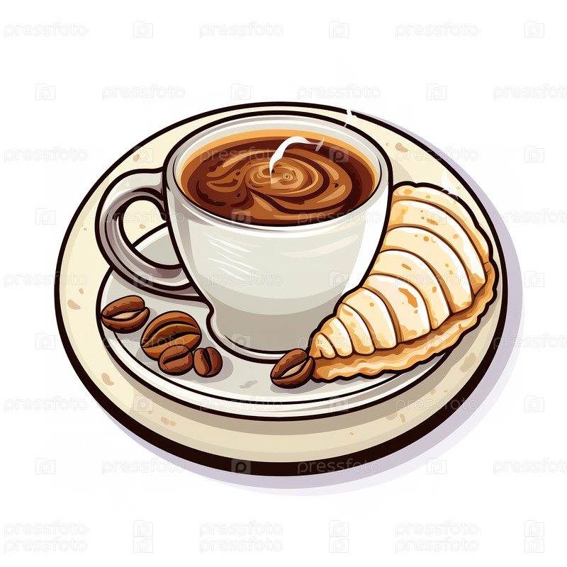 Кружка кофе с круассаном на белом фоне. Генеративный ИИ