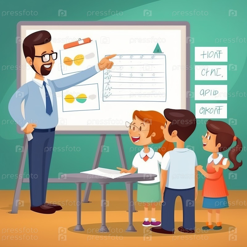 Учитель рассказывает детям урок у доски. Генеративный ИИ
