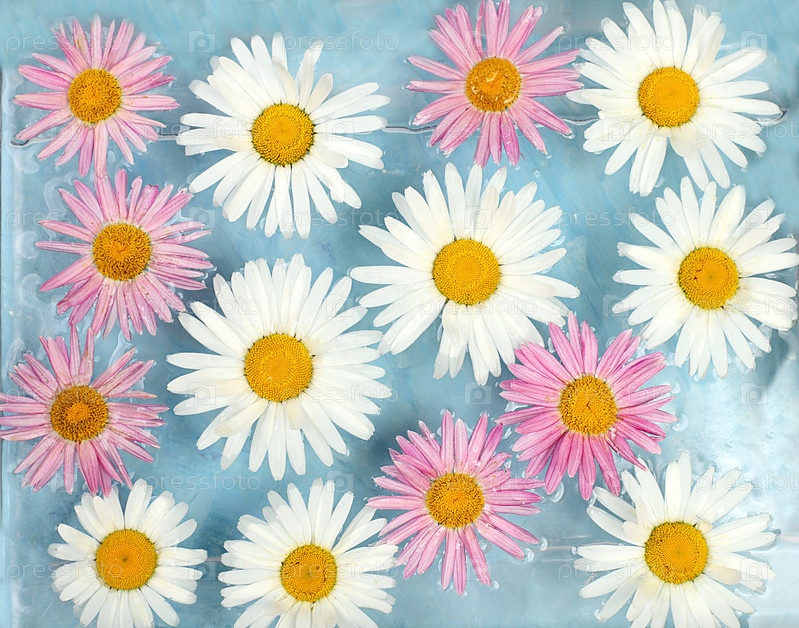 Красивые цветы ромашки на светлом фоне в воде, цветочная композиция и летний баннер, поздравительная открытка на свадьбу, день рождения, шаблон для дизайна, выборочный фокус