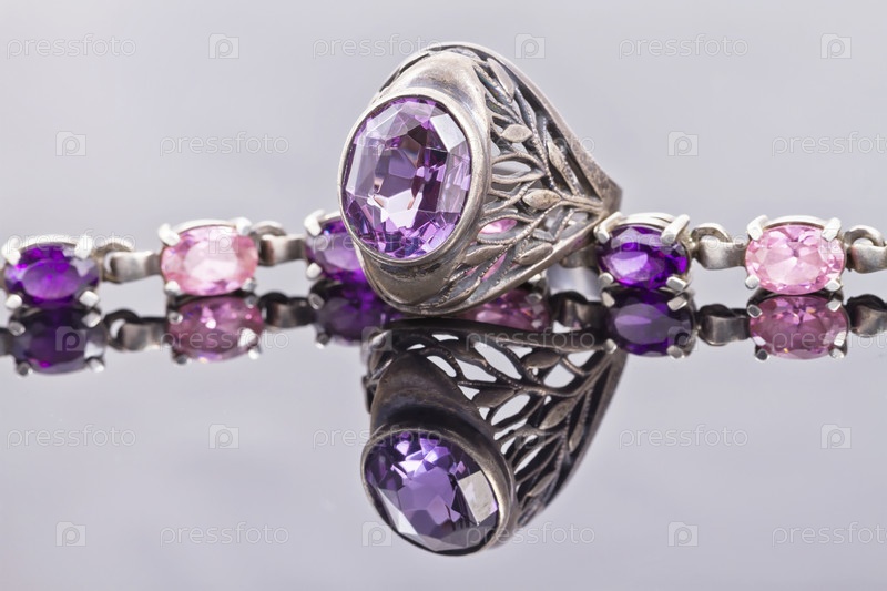 Резное серебряное кольцо с синим камнем и серебряным браслетом