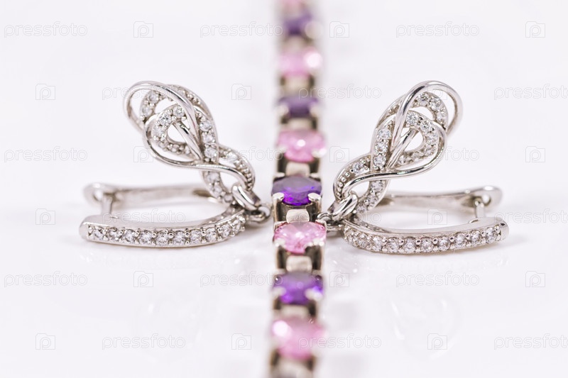 Серебряные серьги в форме подковы и серебряный браслет