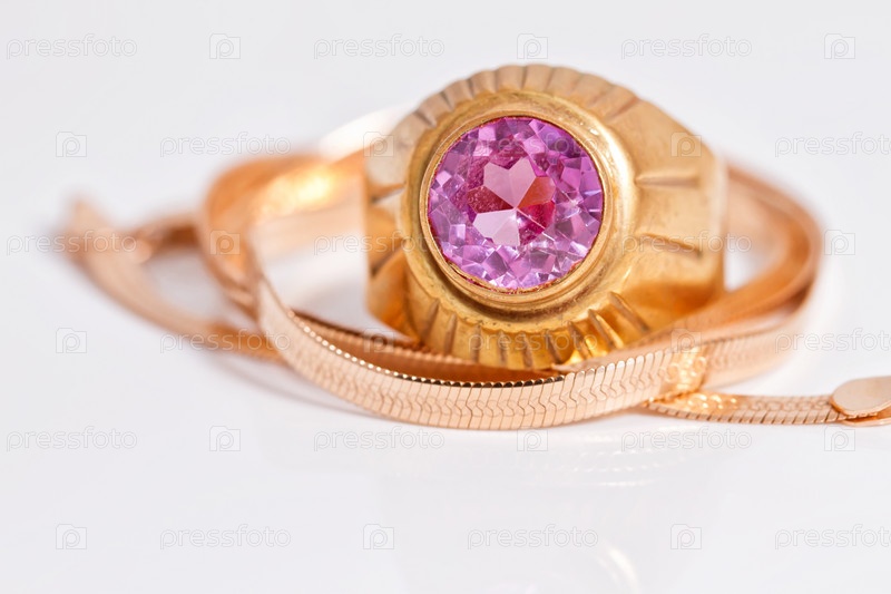 Золотая цепочка и золотое кольцо с рубином
