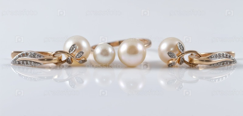 Золотой комплект из кольца и серег с жемчугом