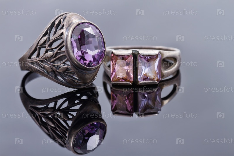 Серебряные кольца старого стиля с фиолетовыми драгоценными камнями