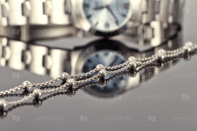Женские часы с серебряной цепочкой из хромированной стали