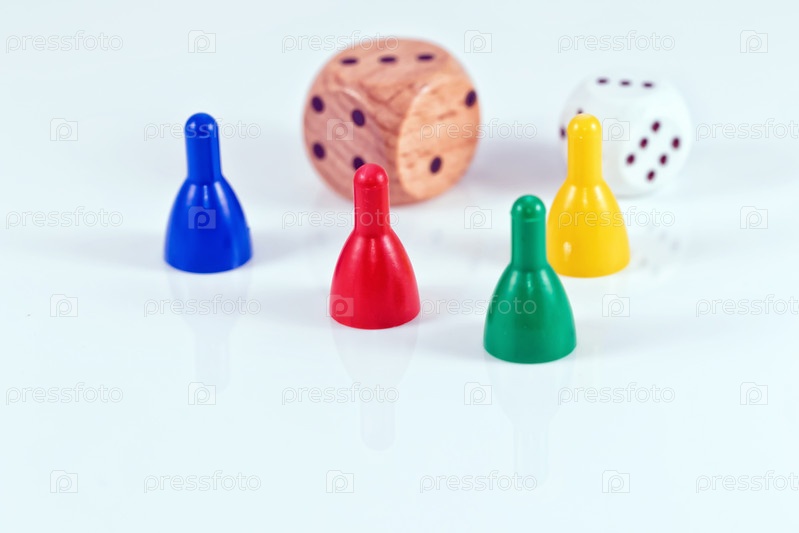 Красочные игровые фигуры и кубики из пластика и дерева