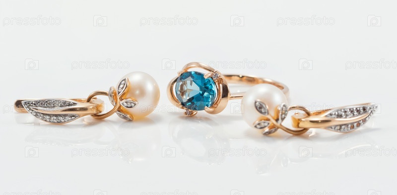 Шикарное золотое кольцо с топазом и золотые серьги с натуральным жемчугом