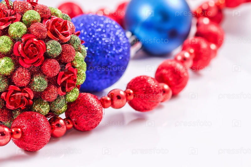 Елочные шары с красной гирляндой