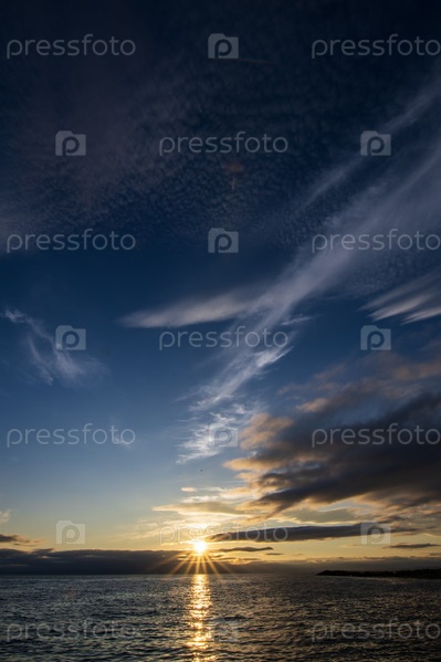 Закат над морем с облаками на небе