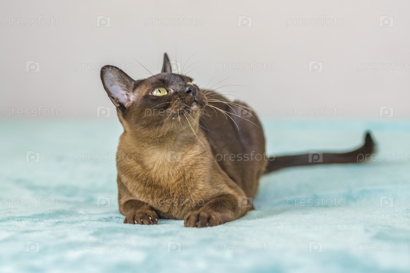 Домашняя кошка бирманской породы, игривая и активная, в многоквартирном доме города. Любит игрушки и бантики. Глаза счастливого питомца, играющего и желающего напасть