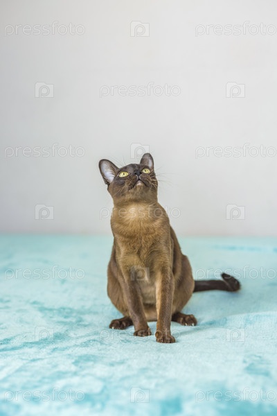 Домашняя кошка бирманской породы, игривая и активная, в многоквартирном доме города. Любит игрушки и бантики. Глаза счастливого питомца, играющего и желающего напасть