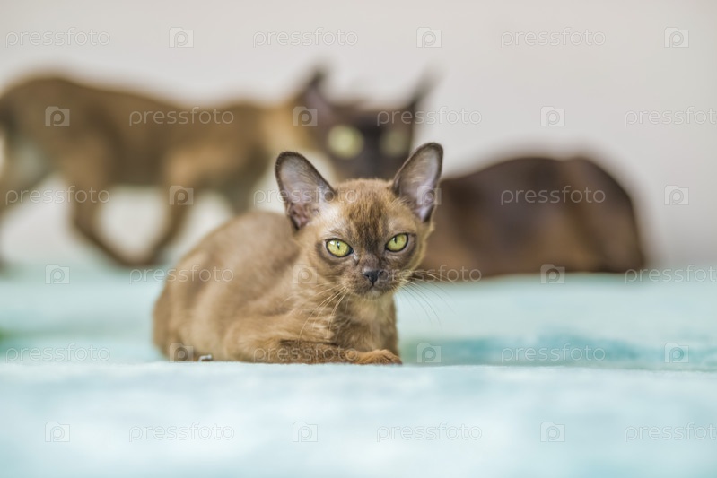 Молодые домашние котята бирманской породы, коричневые, в многоквартирном доме города. Естественная среда обитания