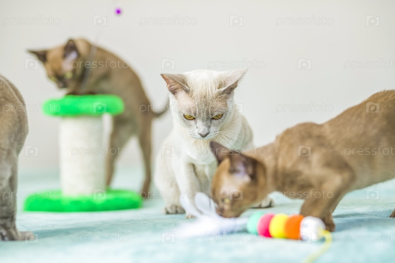Домашняя кошка бирманской породы, игривая и активная, в многоквартирном доме города. Любит игрушки и бантики. Глаза счастливого питомца, играющего и желающего напасть
