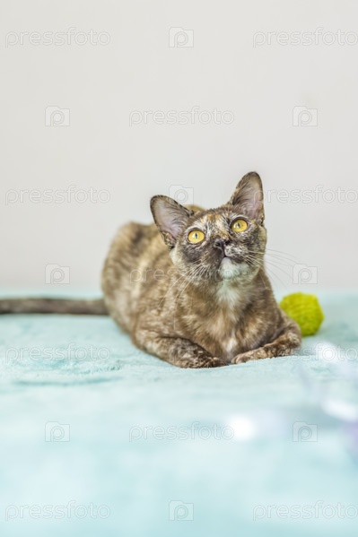 Домашняя кошка бирманской породы, игривая и активная, в многоквартирном доме города. Любит игрушки и бантики. Глаза счастливого питомца, играющего и желающего напасть