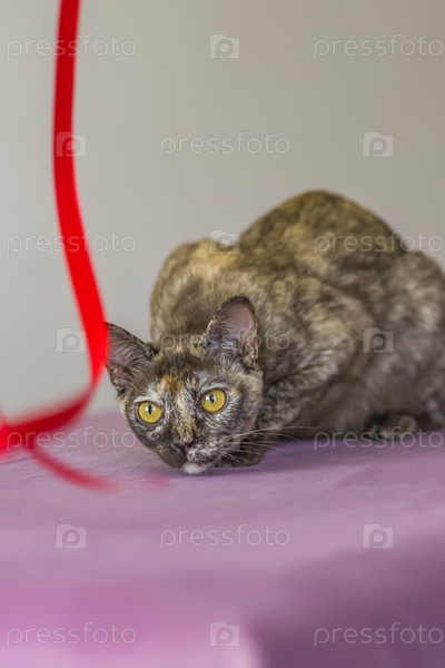 Домашняя кошка бирманской породы, игривая и активная, в многоквартирном доме города. Любит игрушки и бантики. Глаза счастливого питомца, играющего и желающего напасть