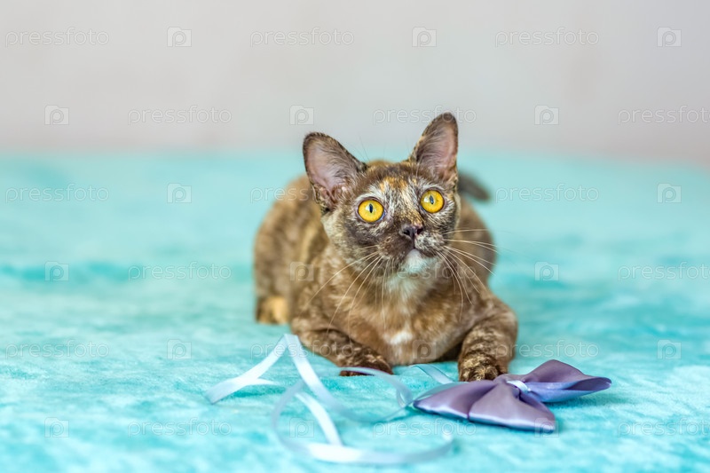 Домашняя кошка бирманской породы, игривая и активная, в многоквартирном доме города. Любит игрушки и бантики. Глаза счастливого питомца, играющего и желающего напасть