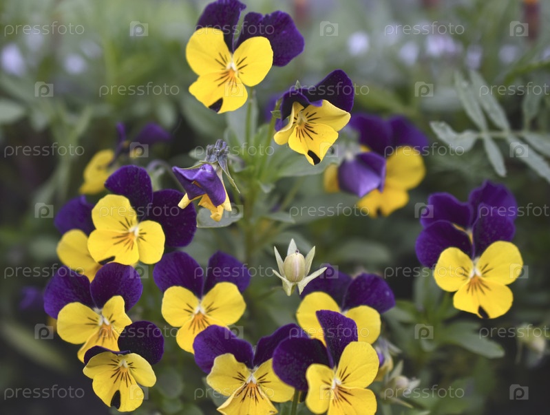 Виола трехцветная. Желто-синие фиолетовые цветы. Фиолетовый макрофото