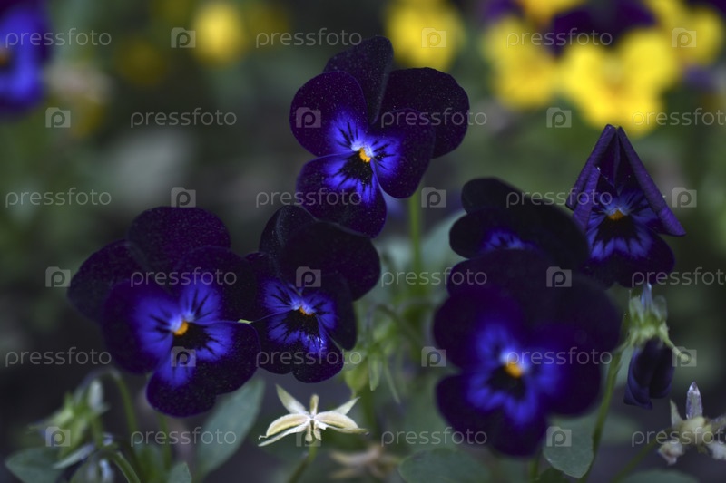 Виола трехцветная. Желто-синие фиолетовые цветы. Фиолетовый макрофото