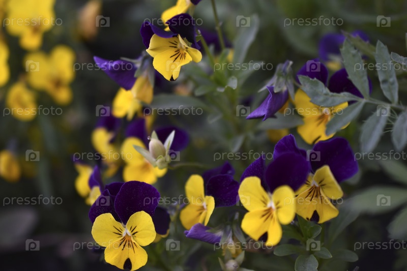 Виола трехцветная. Желто-синие фиолетовые цветы. Фиолетовый макрофото