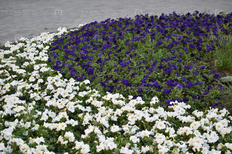 Большие цветы петунии на клумбе в городском парке