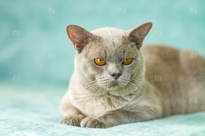 Домашний бирманский кот, серый с желтыми глазами, в многоквартирном доме города. Естественная среда обитания
