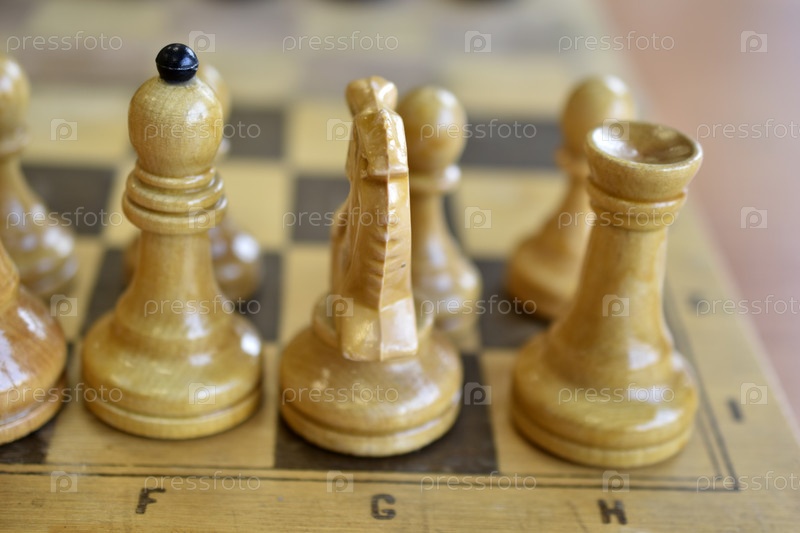 Шахматные фигуры на доске. Деревянные шахматные фигуры