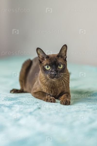 Домашняя кошка бирманской породы, игривая и активная, в многоквартирном доме города. Любит игрушки и бантики. Глаза счастливого питомца, играющего и желающего напасть