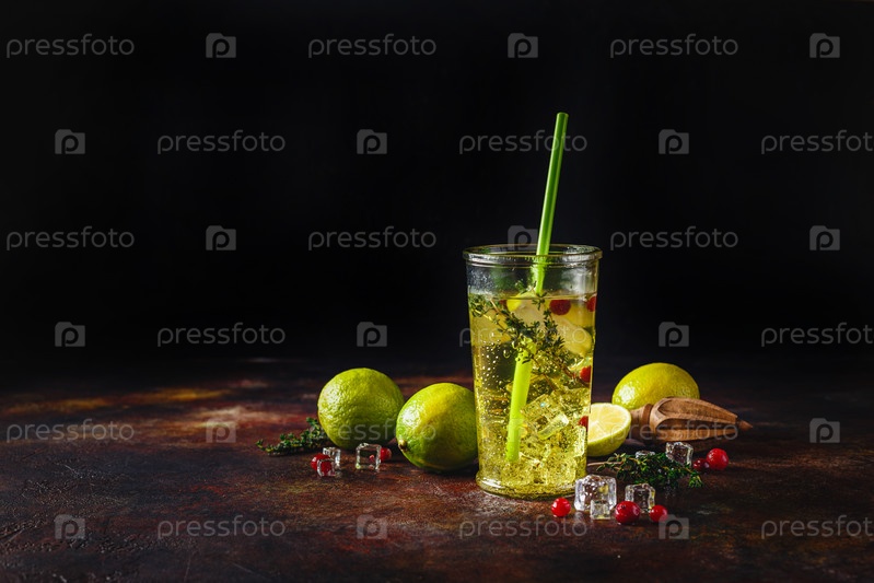 Лаймовый лимонад с тимьяном, клюквой и льдом