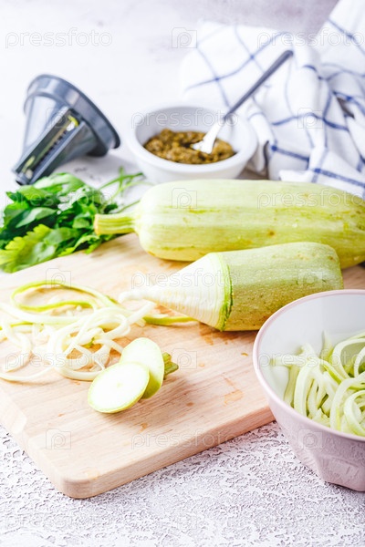 Кабачки спагетти на светлом фоне