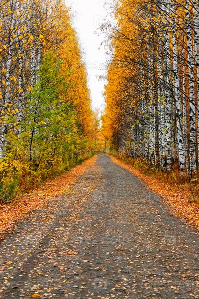 Сельская тропа в желтом осеннем лесу