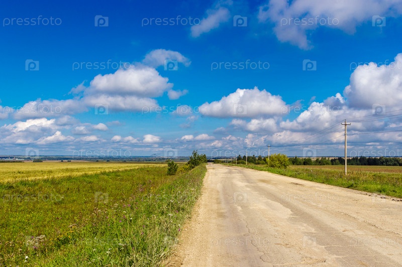 Летний пейзаж асфальтовая дорога в сельской местности