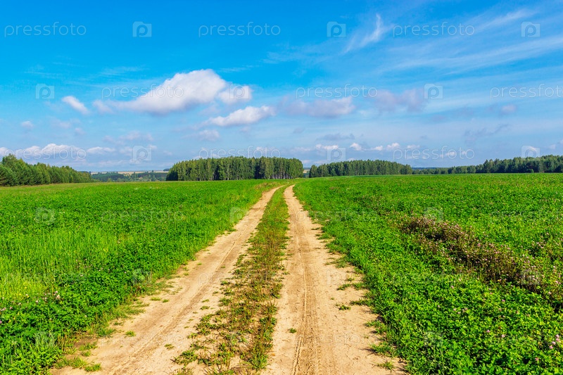 Грунтовая дорога в поле в солнечный летний день