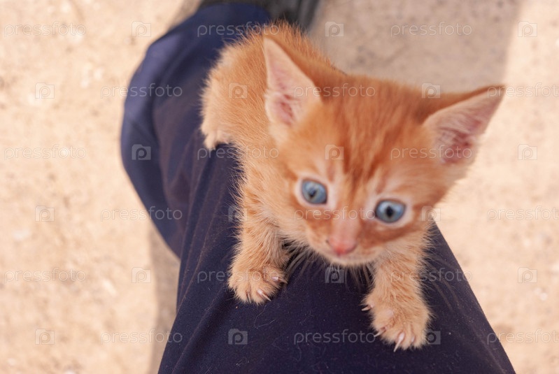 Маленький бездомный рыжий котенок, бедный котенок