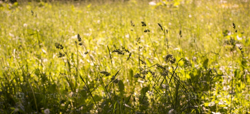 Цветущие колосья сорняков. натуральный газон на ярком солнце