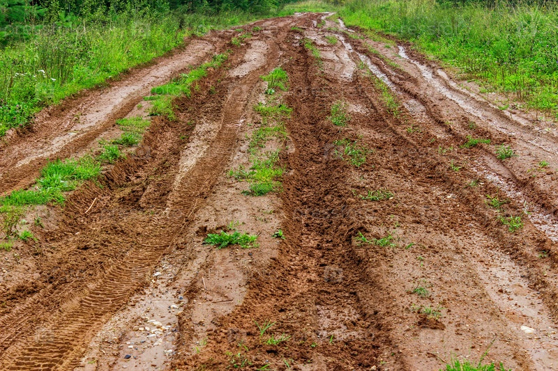 Грунтовая дорога в сельской местности в пасмурный летний день