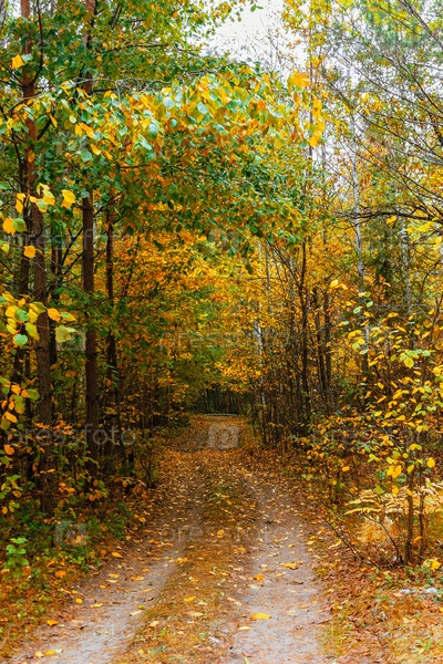 Грунтовая дорога в лесу в осенний день